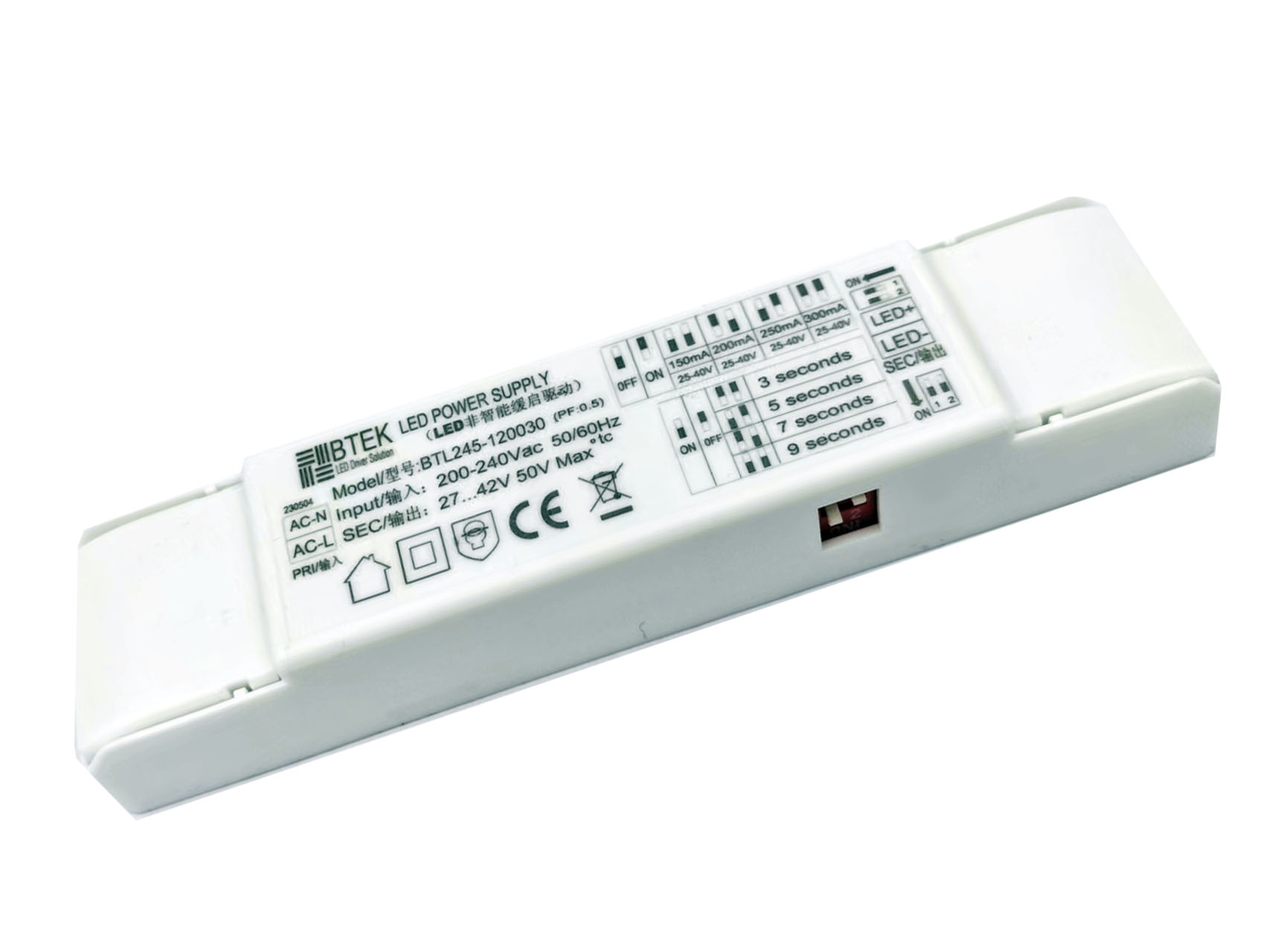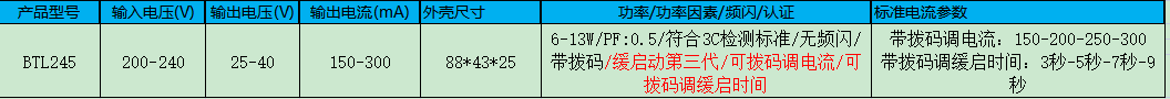 该产品型号为BTL245,属于筒射灯缓启动电源