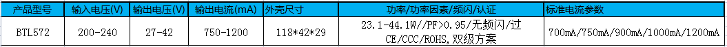 该产品型号为BTL572,属于筒射灯/导轨灯/面板灯电源