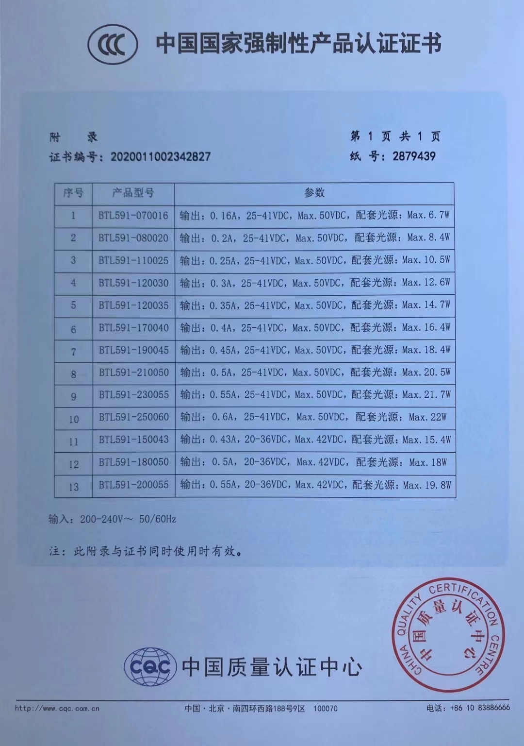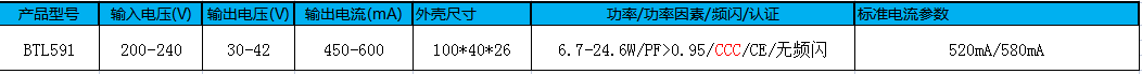 该产品型号为BTL591,属于筒射灯/导轨灯/面板灯电源系列